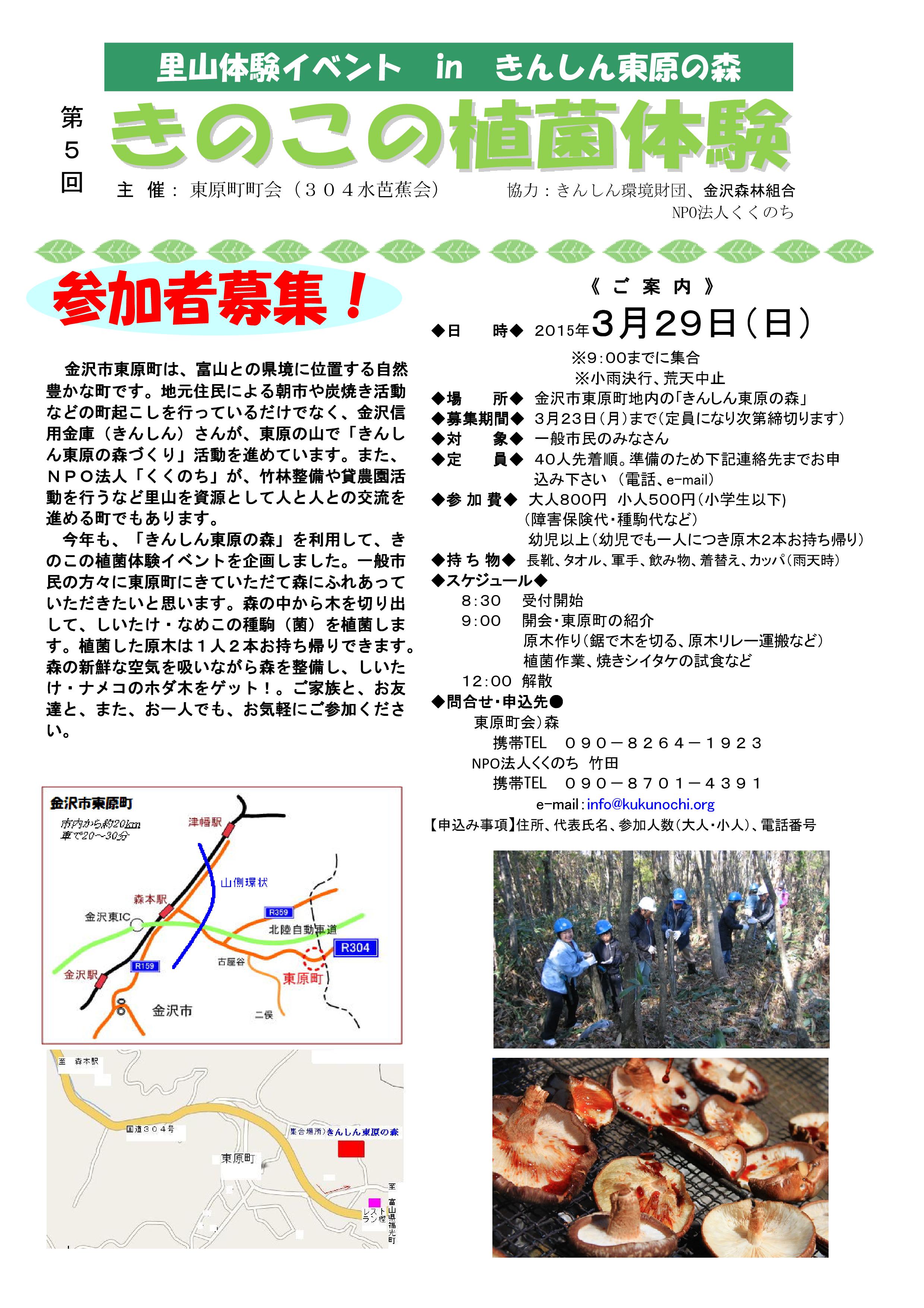 【きのこの植菌体験 参加者募集 ~春の金沢 里山自然体験イベント~】