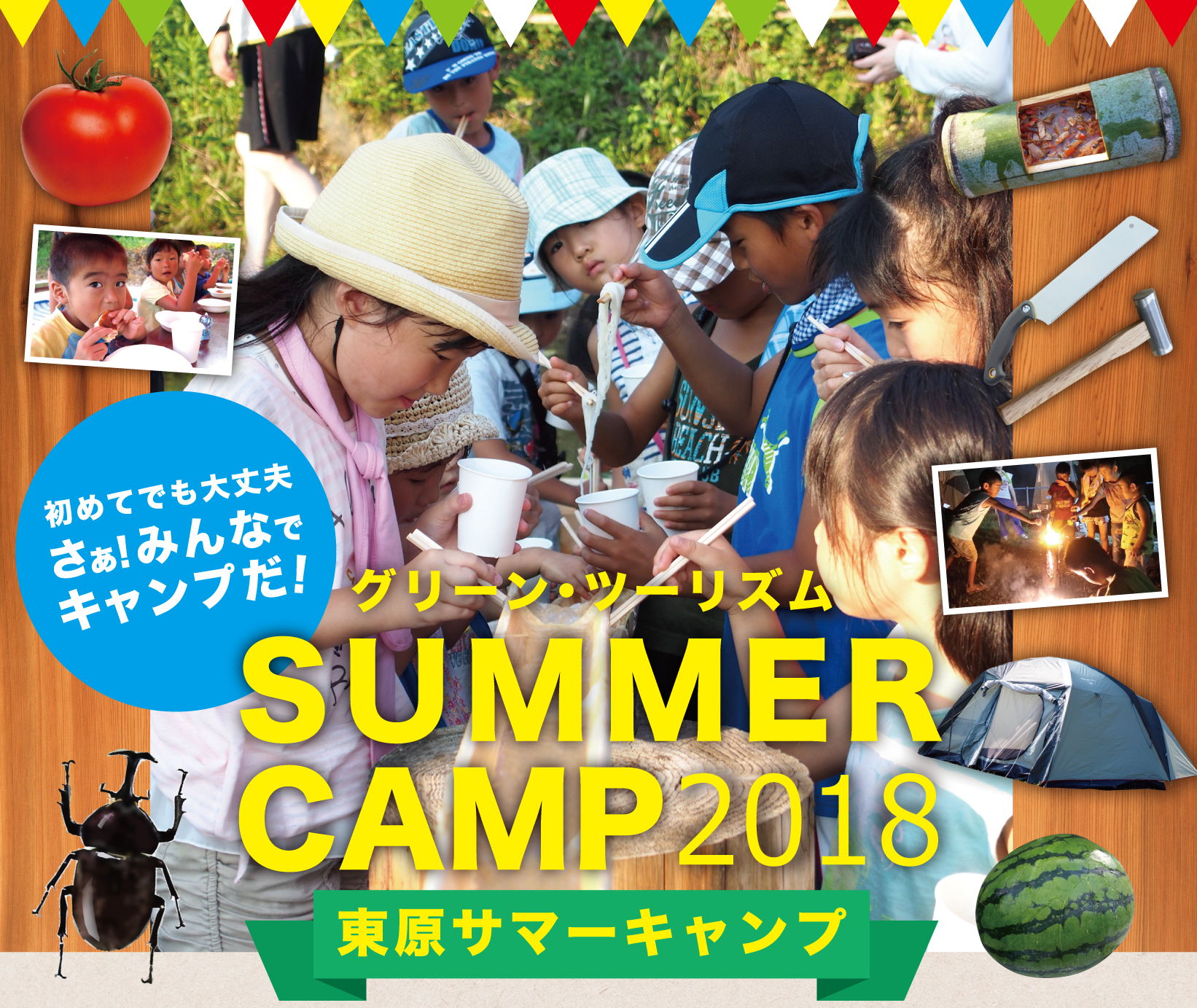 里山での夏の自然体験イベント「東原サマーキャンプ」のご案内です。
