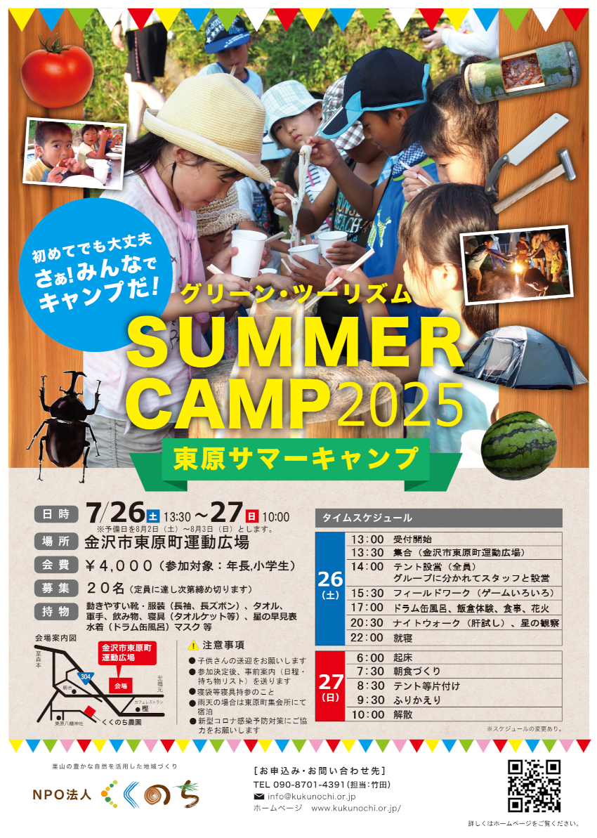 【東原サマーキャンプ2025 参加者募集 ~夏の金沢 里山自然体験イベント~】
