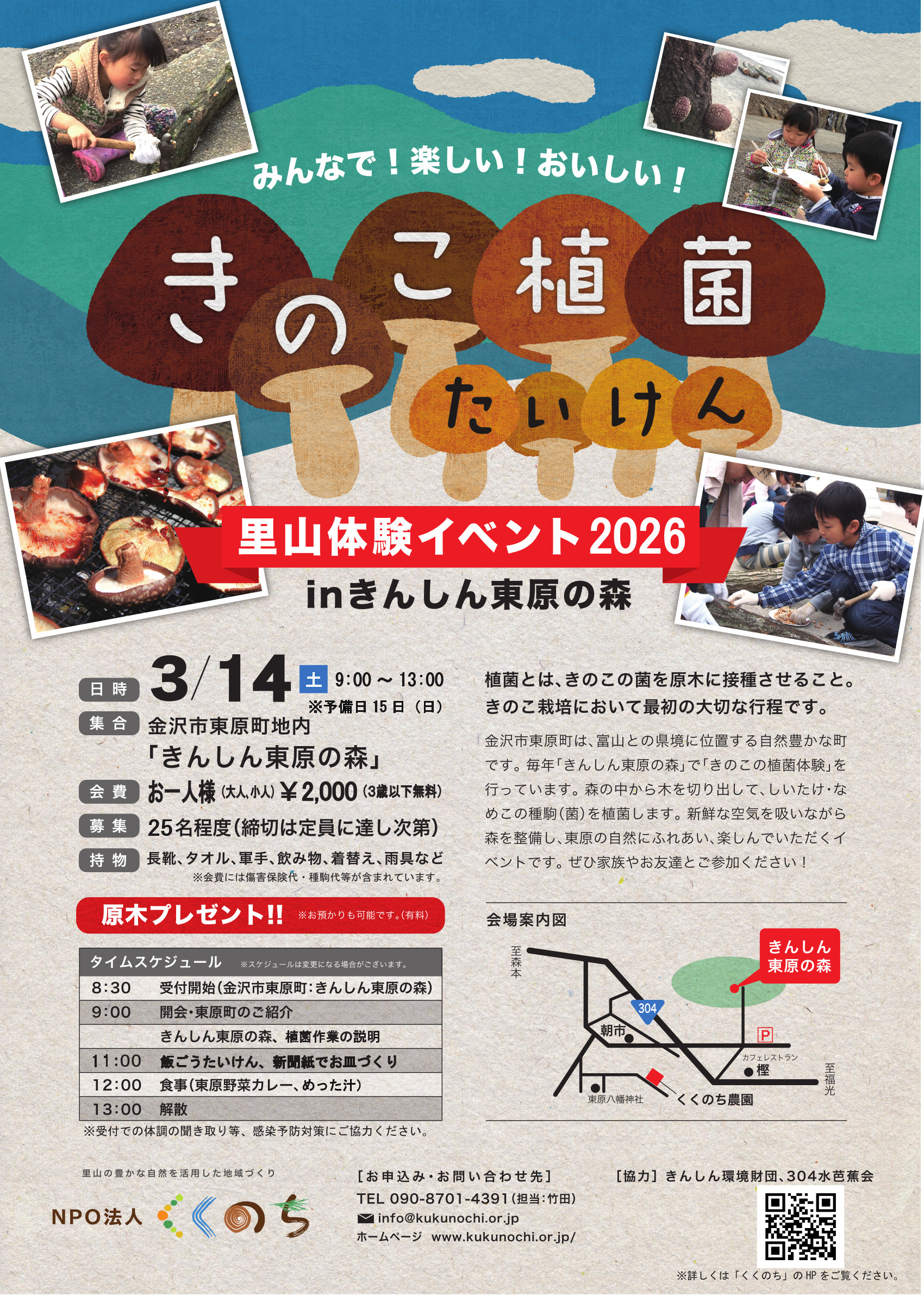 【きのこ植菌たいけん2026 ~春の金沢 里山自然体験イベント~ 参加者募集のご案内】