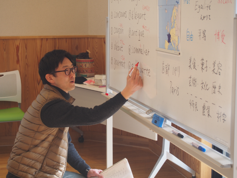 またフランス語については、フランス・ノルマンディ地方のルーアンに留学していた金沢市三谷地区 地域おこし協力隊の 松田優樹 先生が講師をされました。