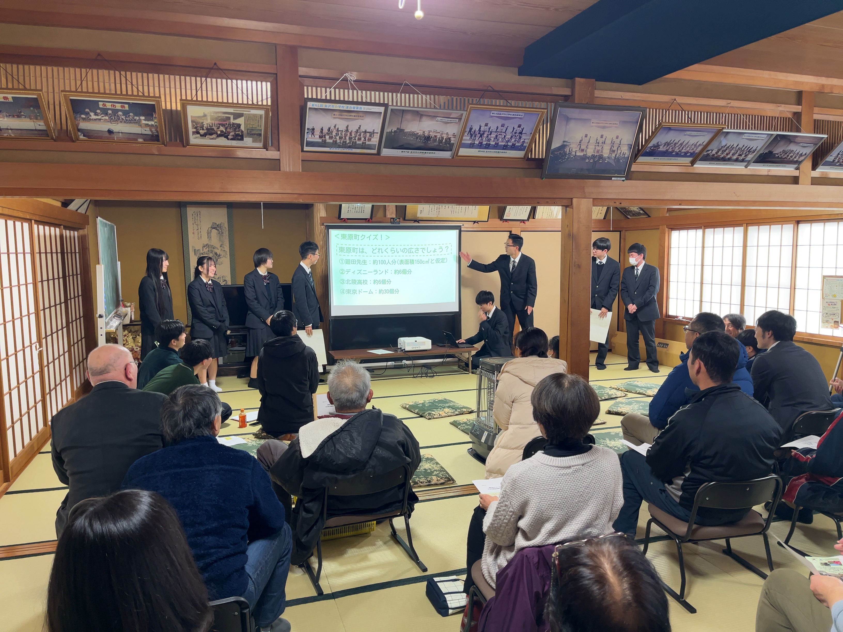 また、今回は北陵高校生によるまちづくり活動報告も行いました。 東原町では、大学生によるインターンシップと高校生のまちづくり活動が並行して実施されています。今後は、双方の活動を融合させながら、東原町のまちづくり活動が更なる発展を遂げることを目指します。