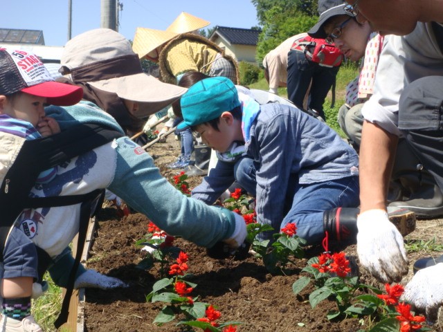 町内の農道の除草作業や花壇整備にコープいしかわ様で募っていただいた組合員さんに保全活動ボランティアとしてお手伝いしてもらいました。