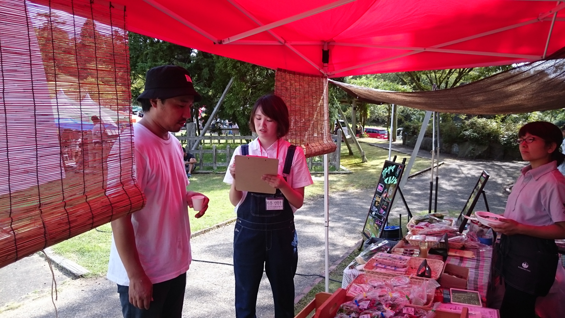 今回、サトヤママルシェでは、「ぶどうの木」とコラボによって誕生した、金沢市東原産たまねぎ100%使用の「たまねぎドレッシング」を多くのお客様に試食していただきましたが、只今、当法人にインターン中の金沢大学生 石尾が頑張ってくれた甲斐もあって、多くのお客様のから高評価をいただきました。