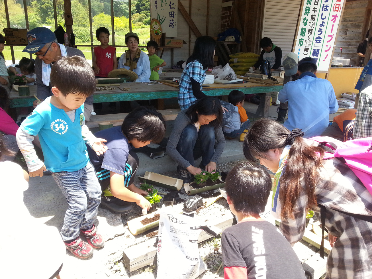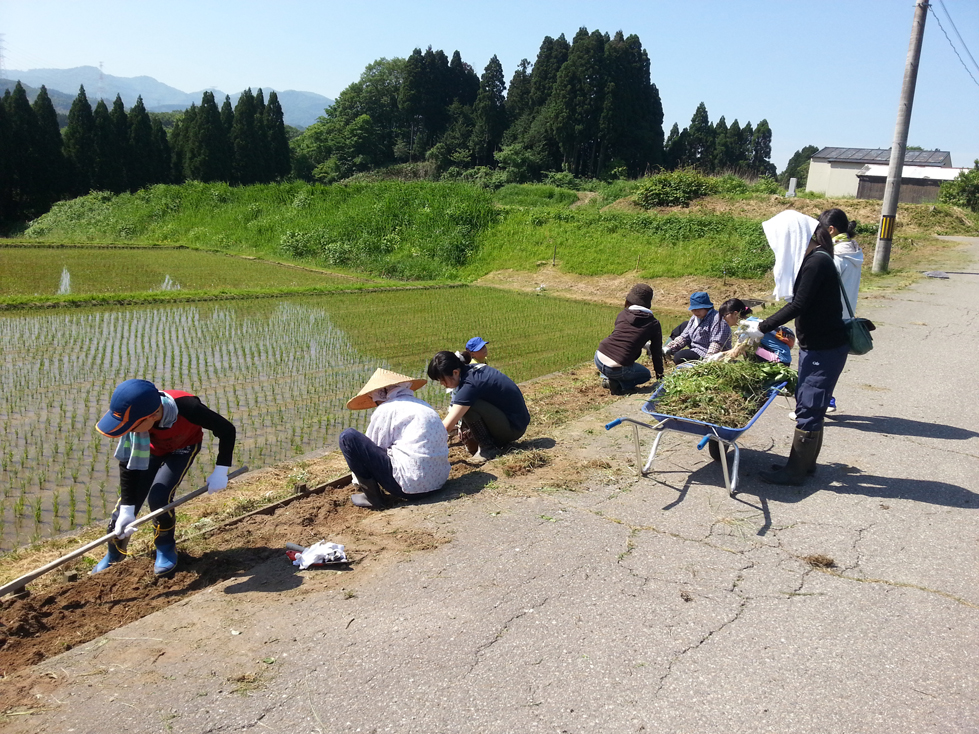 【東原町×くくのち×コープいしかわ】6月最初の日曜日。この日、金沢市東原町では、梅雨入り前に草刈を行っています。今年は、コープいしかわ様との連携企画に応募された組合員のご家族方々にも、町内の草刈、農道沿いの花壇の整備作業を手伝っていただきました。その後、親子でワイワイ賑やかに竹笛やプランターづくり、カブトムシの幼虫採りを行い、金沢の里山の自然に触れてもらいました。